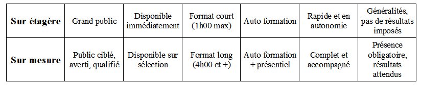 Différences entre une formation étagère et sur mesure